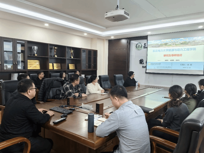 2025年11月5日,能源与动力工程学院组织召开2025年度新晋研究生导师培训会。本次培训以贯彻落实教育部《关于全面落实研究生导师立德树人职责的意见》及《研究生导师指导行为准则》为核心目标,通过政策解析、案例研讨与实务交流,全面提升新晋导师的思政素养、学术指导能力与管理水平。会议由学院副院长金旭主持,并邀请了2024年吉林省优秀硕士论文指导教师李浩然、姜海峰做了专题讲座。